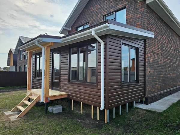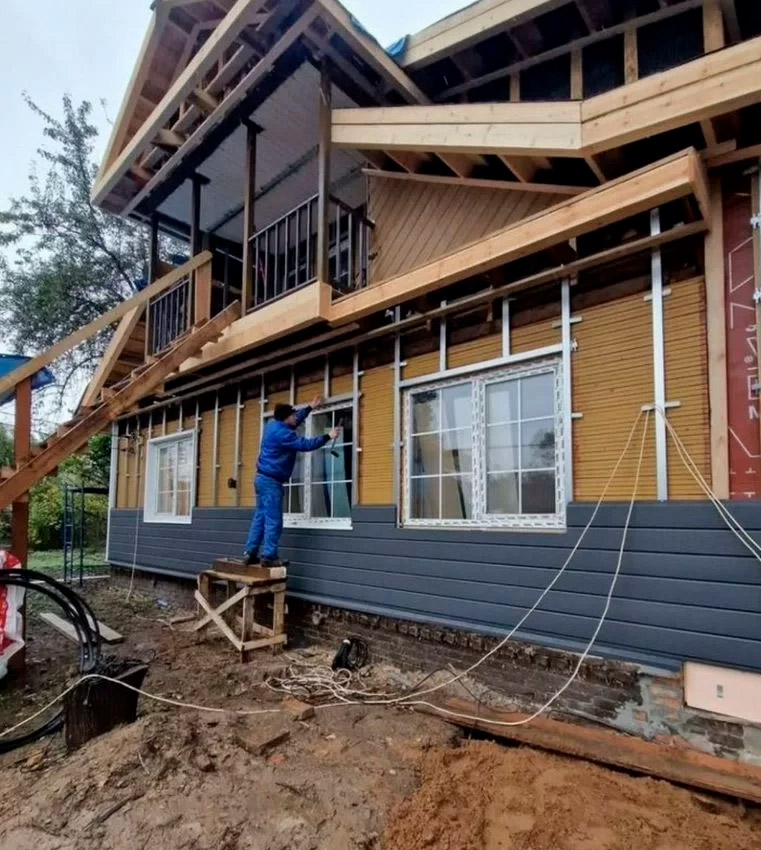 - Строительство под ключ от фундамента до монтажа водосточной системы, снегозадержателей на крыше;